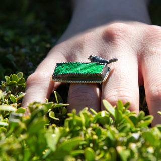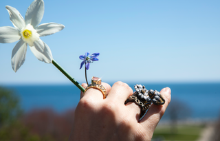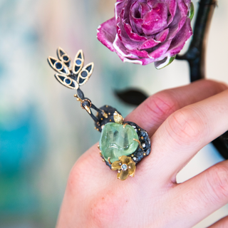 It's the hidden humor, duality, and mischief in daily life that inspire my sculptural jewelry, infusing it with surprise. I try to find a balance between the absurd and serious, modern and antique, feminine and strong. Things just seem funnier when they are tiny..... I invite you to take a closer look. All of the pieces are fabricated and cast by hand in silver and gold with precious and semi-precious stones.
