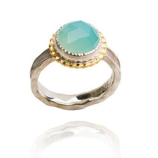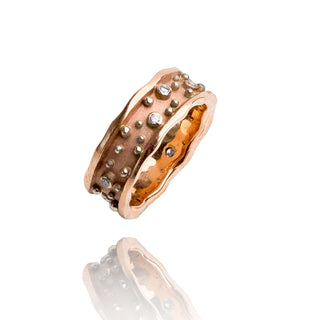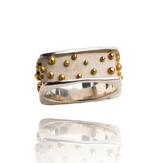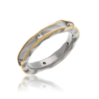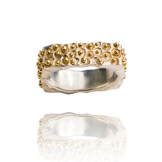 7mm ring, 18k yellow gold with 6-2pt diamonds and scattered 14k white gold balls